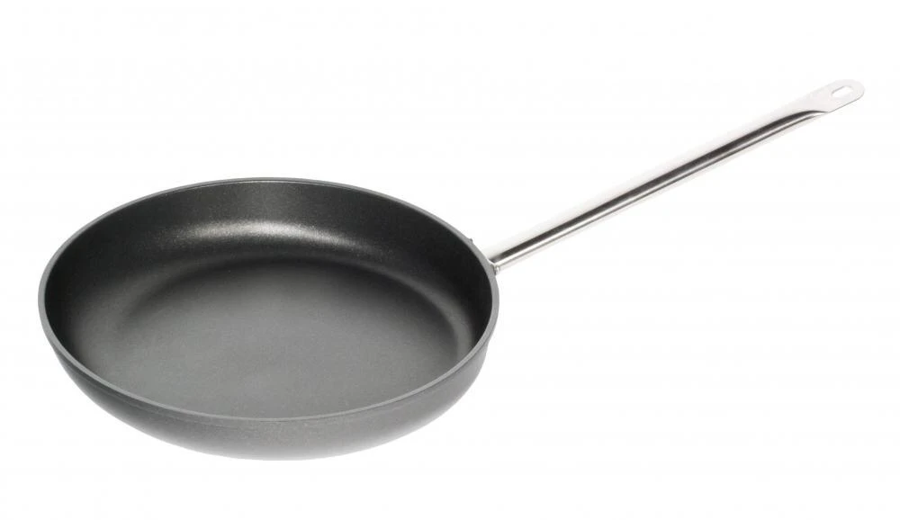 AMT Lyoner Pfanne aus Aluguss mit einem extra langen Edelstahlgriff in 36 cm. Zur Zubereitung von Pfannengerichten in großen Mengen. Hervorragend im Frontcooking. Das Werkzeug der Deutschen Köche-Nationalmannschaft.