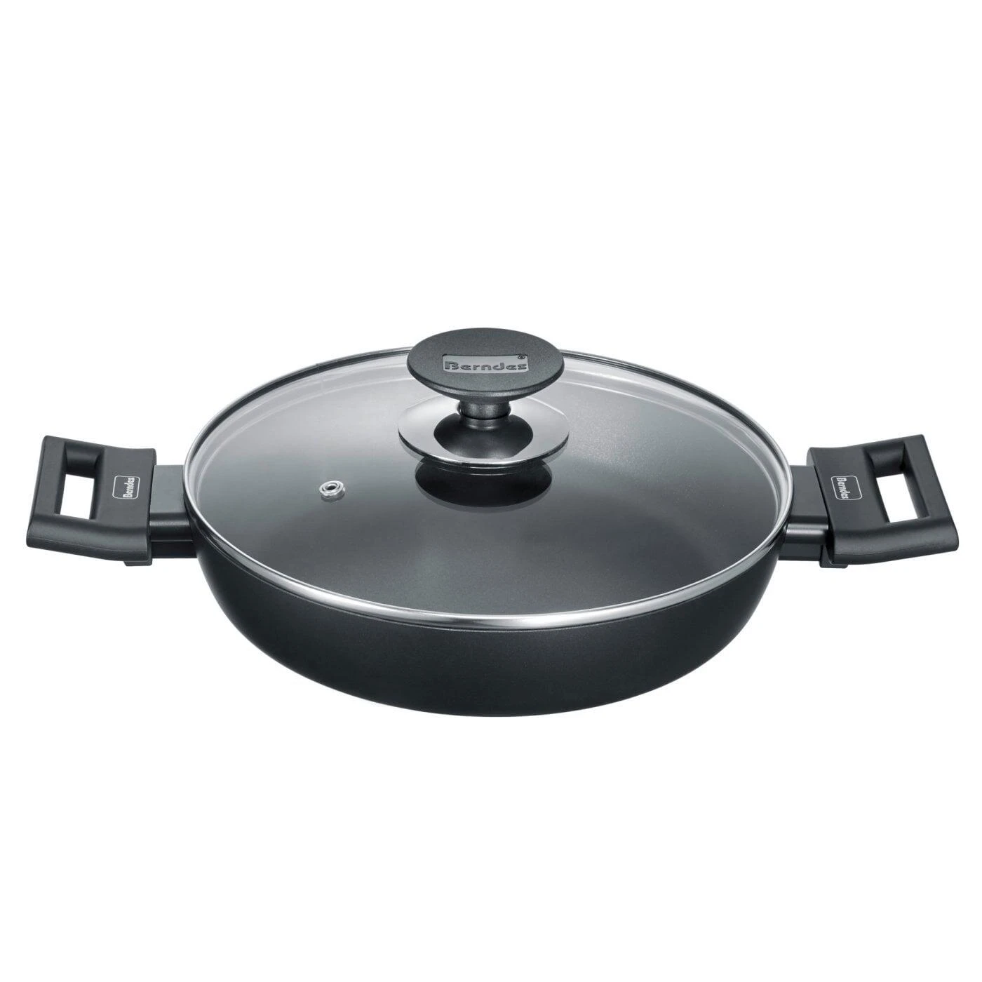 Berndes Servierpfanne mit Glasdeckel Alu Induction. Die Servierpfanne aus Aluminium in schickem Schwarz, inklusive Deckel aus Glas.