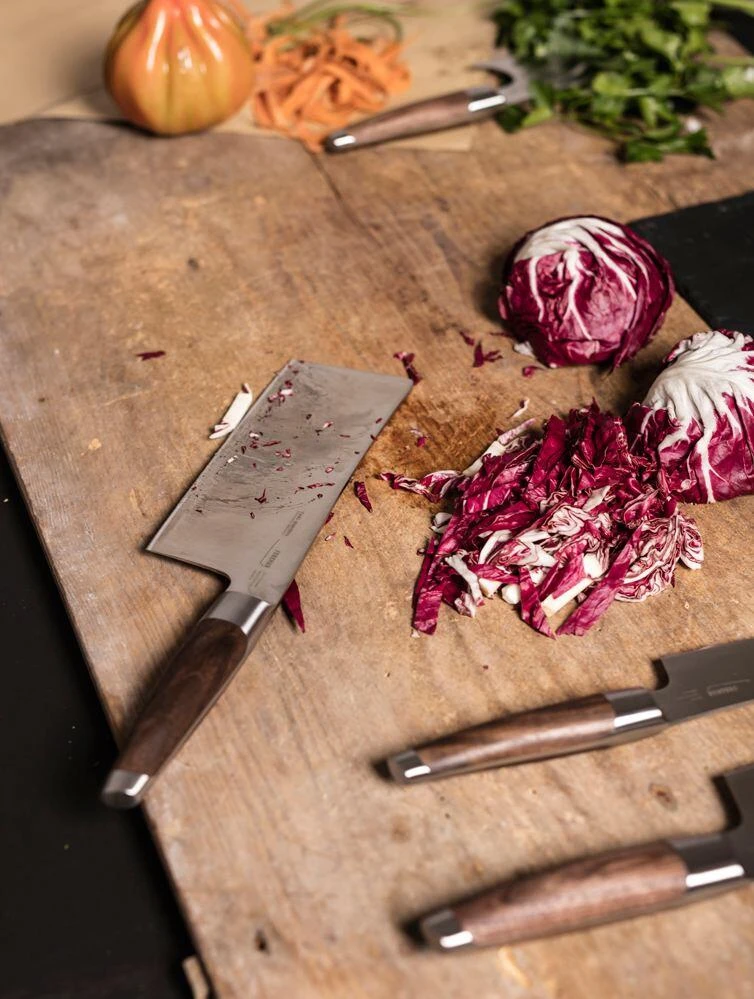 Die Serie Foreman von Carl Mertens umfasst Santoku-, Koch- und chinesische Hackmesser sowie Chopper, Tournier- und Kräutermesser.