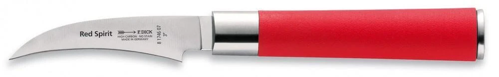 Dick Tourniermesser Red Spirit passt sich dank geschwungener Klinge besonders gut dem Schneidgut an. Obst und Gemüse wird mit dem Messer auf effektive und zügige Weise geschält, geschnitten und angerichtet.