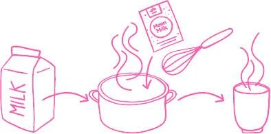 Zubereitung: 100–150 ml Bio-Milch, Bio-Haferdrink oder einen anderen Bio-Pflanzendrink aufkochen, einen Beutel Moon Milk zugeben, mit dem Pürierstab oder Schneebesen mixen & genießen. Noch einfacher: gleich mit einem Milchschäumer aufschäumen!