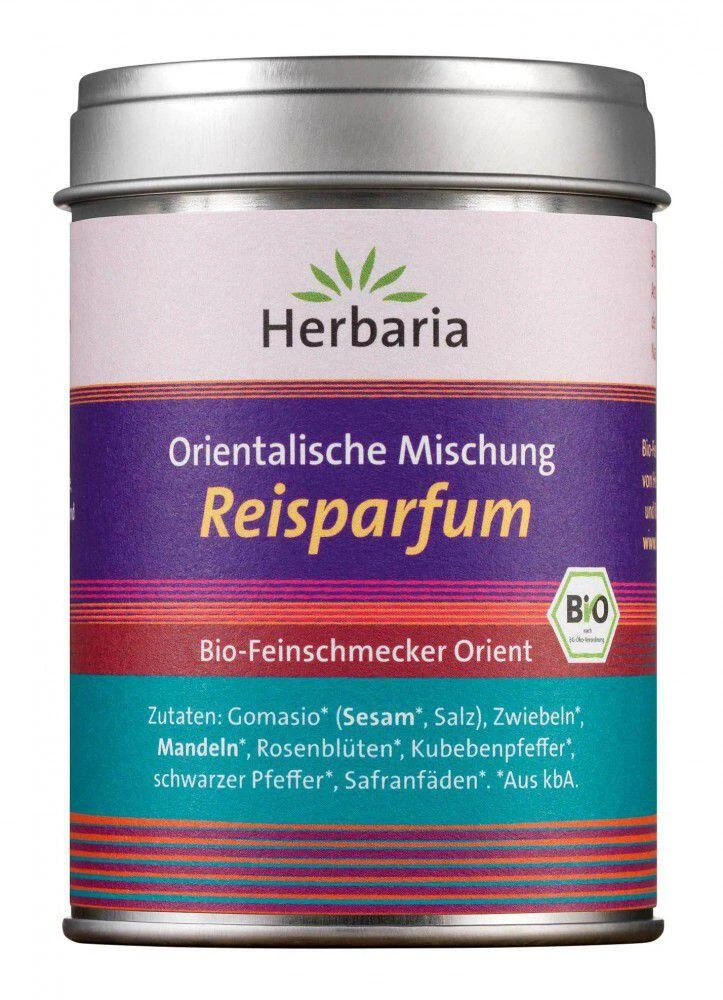 Herbaria Gewürzmischung Reisparfum eignet sich für orientalische Reisgerichte, andere helle Beilagen wie Salzkartoffeln und Blumenkohl oder auch für Cremesuppen. Und nicht nur der Gaumen freut sich, sondern auch das Auge: Die Gewürzmischung enthält dekorative Rosenblüten.