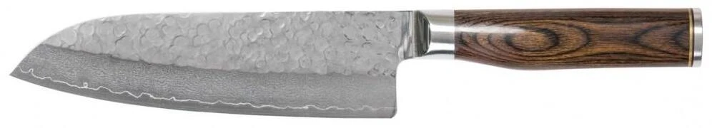 Die KAI Serie Shun Premier Tim Mälzer umfasst professionelle Schneidwerkzeuge vom Brotmesser bis Santoku, die aus 32 Lagen korrosionsbeständigem Damaszenerstahl gefertigt und mit einer handgearbeiteten Hammerschlagoberfläche (in Japan als Tsuchime bekannt) verfeinert sind. Der Kern der Klingen ist besteht aus extrem harten VG-10 Stahl und bietet damit einen optimalen Härtegrad von 61 HRC.