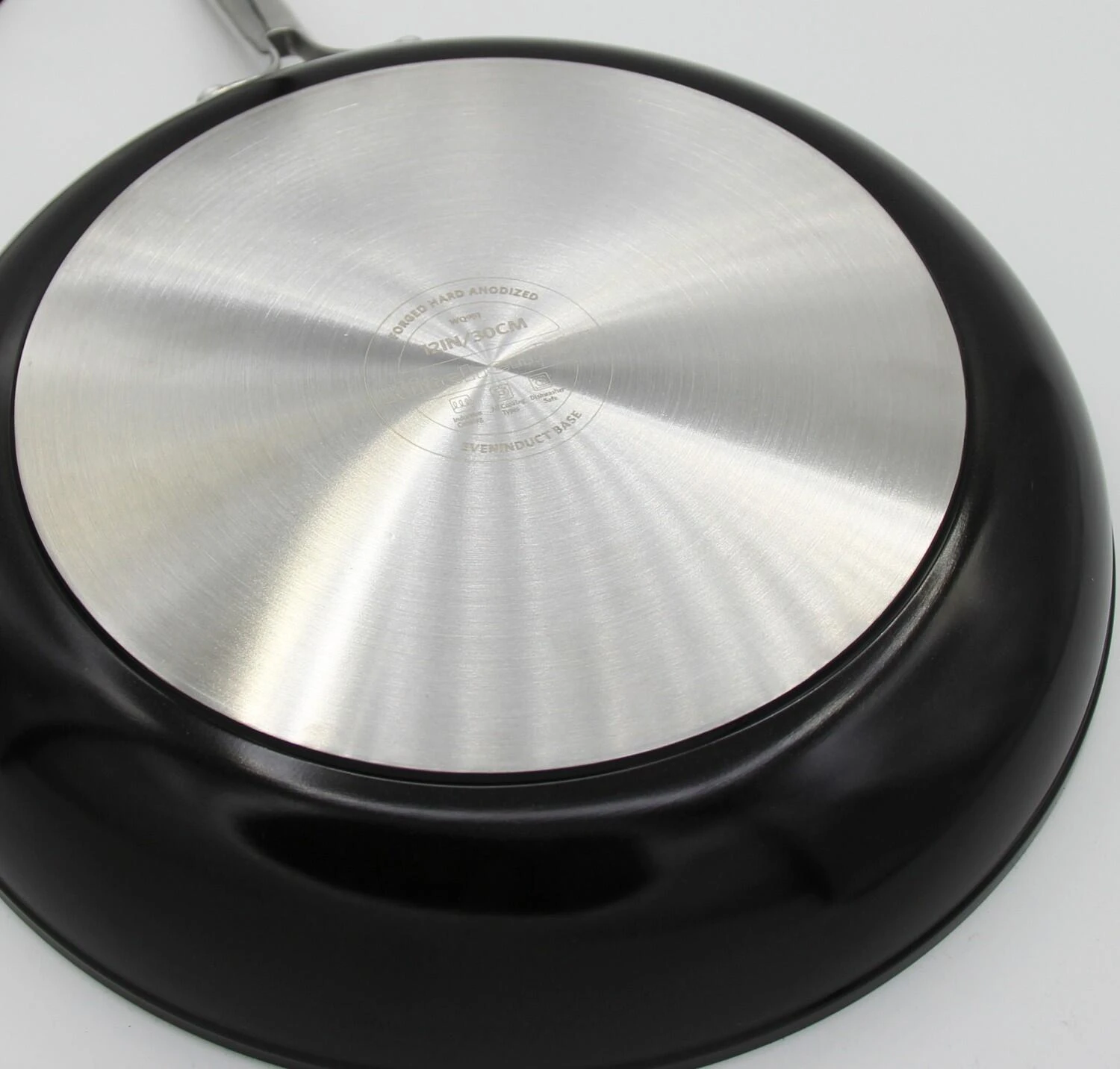 Das 4,5 mm extrastarke, harteloxierte Aluminium garantiert ein schnelles, gleichmäßiges Erhitzen und ist besonders robust und widerstandsfähig