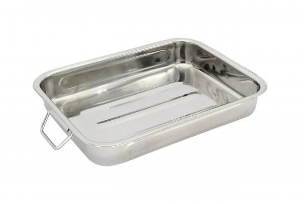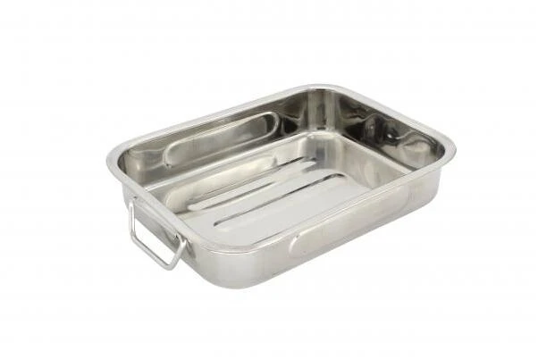 Krüger Vierkantpfanne schwer. Die Vierkantpfanne aus rostfreiem Edelstahl mit platzsparenden Fallgriffen ist vielseitig einsetzbar. Sie eignet sich hervorragend für die Zubereitung von Gratins, Aufläufe, Pizza und Kuchen sowie zum Anrichten oder Servieren von Salaten und vielen anderen Speisen. Außerdem kann die Edelstahlform auch ideal als attraktive Servierschale auf Festen oder für das Buffet eingesetzt werden.