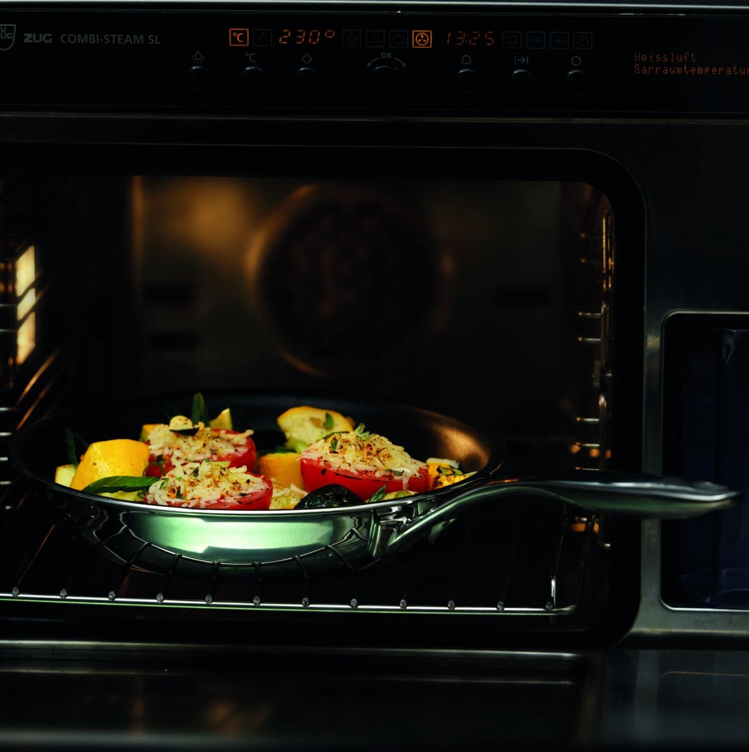 Die Swiss Multiply Pfanne eignet sich für den Einsatz auf allen Herdarten (Induktion / Gas / Ceran / Gusseisen / Elektro / Halogen) und ist zudem bis 250°C backofentauglich. So lässt sich z.B. ihr Fisch auf Gemüsebett in der Pfanne anbraten und danach im Ofen niedergaren, oder fertig garen. Dafür gibt’s die passenden Glasdeckel in allen Größen.