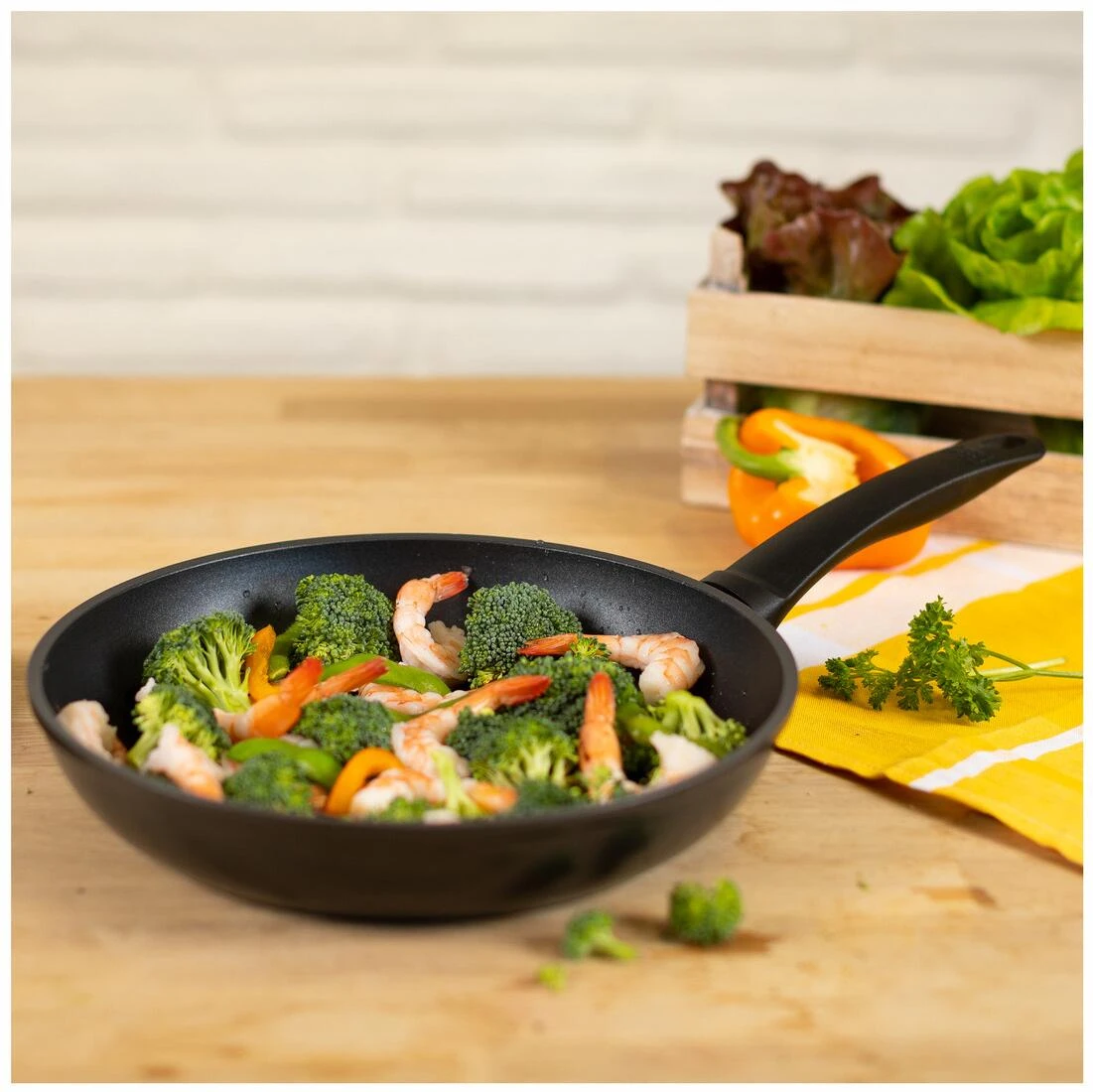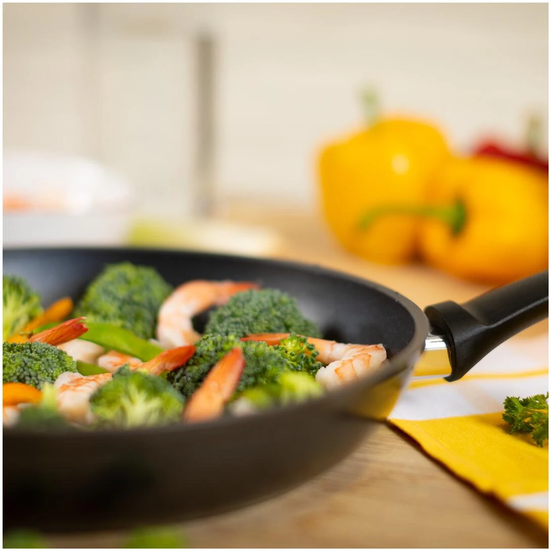 Dank des geschmiedeten Aluminiums bleibt die Pfanne sehr handlich und ist für den täglichen Gebrauch bestens geeignet und dank ihrer mit Titan – Partikeln verstärkten 3 – lagigen Antihaftbeschichtung überzeugt diese Serie durch ihre Langlebigkeit und der erhöhten Verschleissfestigkeit. Alle Easy Induction Produkte besitzen eine vollflächige Induktionsronde, um einen bestmöglichen Wirkungsgrad auf einem Induktionskochfeld zu erzielen.