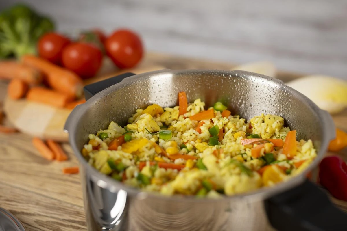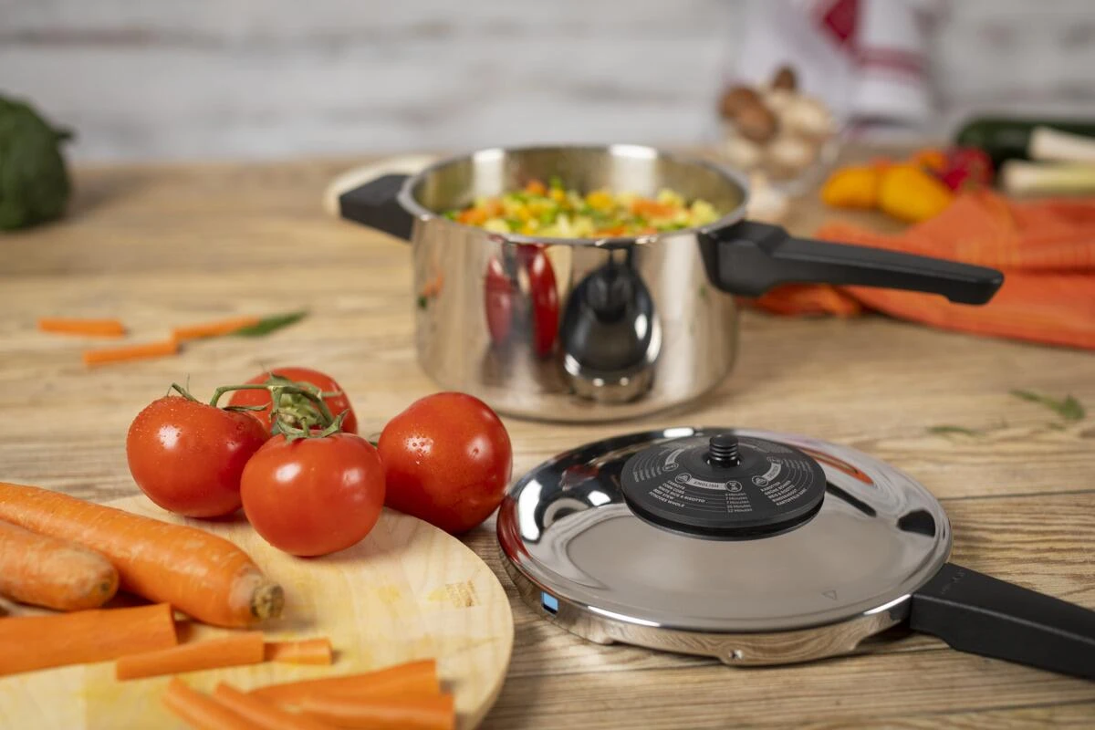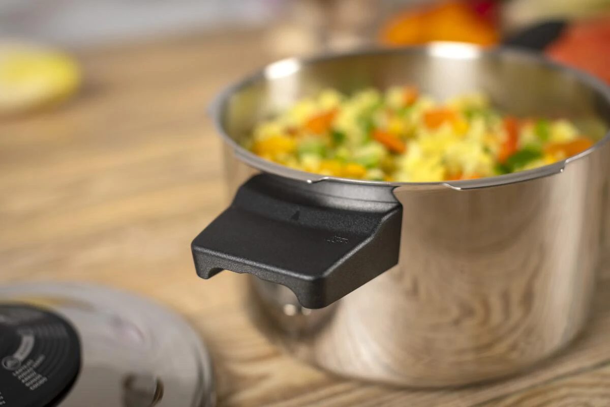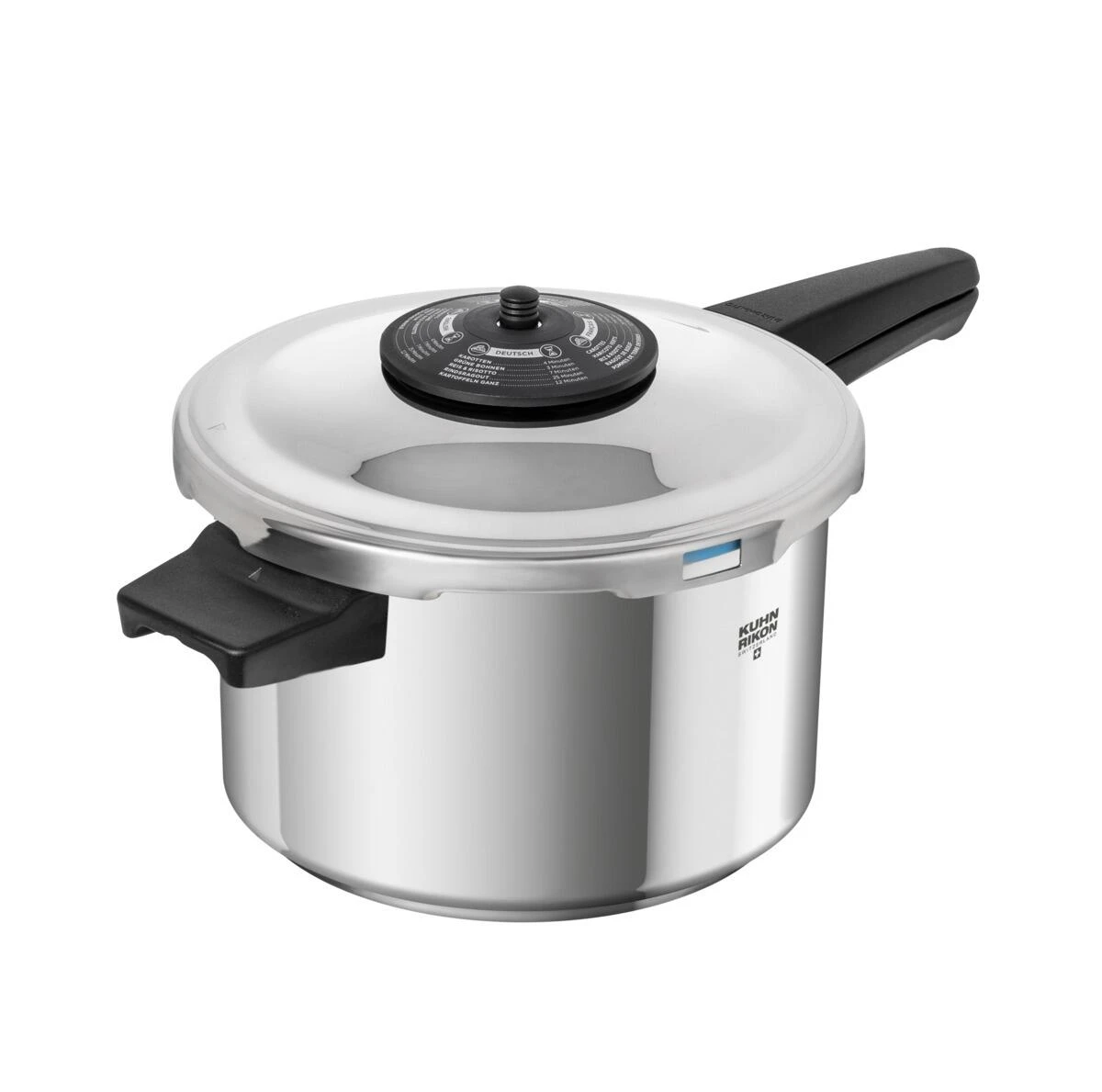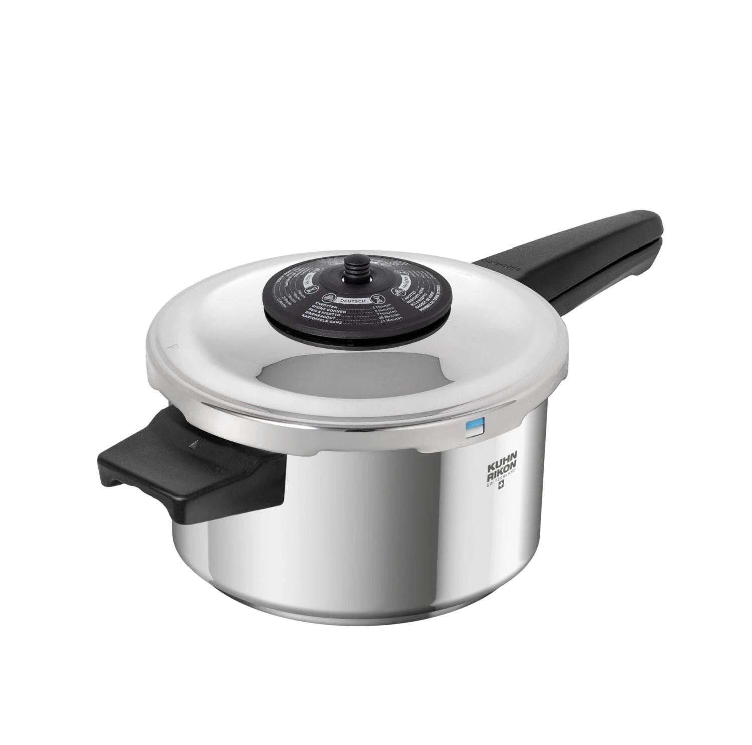 Kuhn Rikon Schnellkochtopf Stielmodell Duromatic Classic, made in der Schweiz. Der Schnellkochtopf ist nicht nur schneller, und bis zu 70% energiesparender, sondern erhält auch mehr Vitamine und Nährstoffe. Im Dampfkochtopf können Sie Hauptspeisen und Beilagen gleichermaßen kochen: gesund, schnell, effizient und sicher.