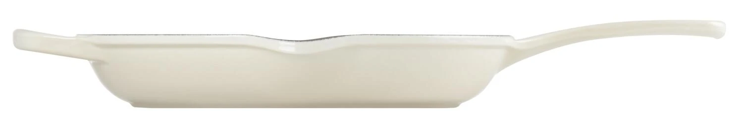 Le Creuset Brat- und Servierpfanne Signature aus Gusseisen in meringue. Die Le Creuset Brat- und Servierpfanne eignet sich für scharfes Anbraten oder zum Überbacken von Gemüsegerichten im Ofen. Da die ergonomischen Griffe aus Gusseisen gefertigt sind, kann die Pfanne problemlos im Backofen zum Einsatz kommen. Beidseitige Ausgüsse helfen überschüssige Flüssigkeiten oder Saucen platziert um- bzw. auszuschütten.