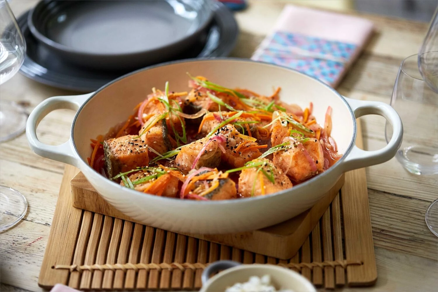Tipp: Kochen Sie mit einer gleichmäßigen, niedrigen bis mittleren Hitze, um Ihr Gusseisen zu schonen und leckere Ergebnisse zu erzielen.