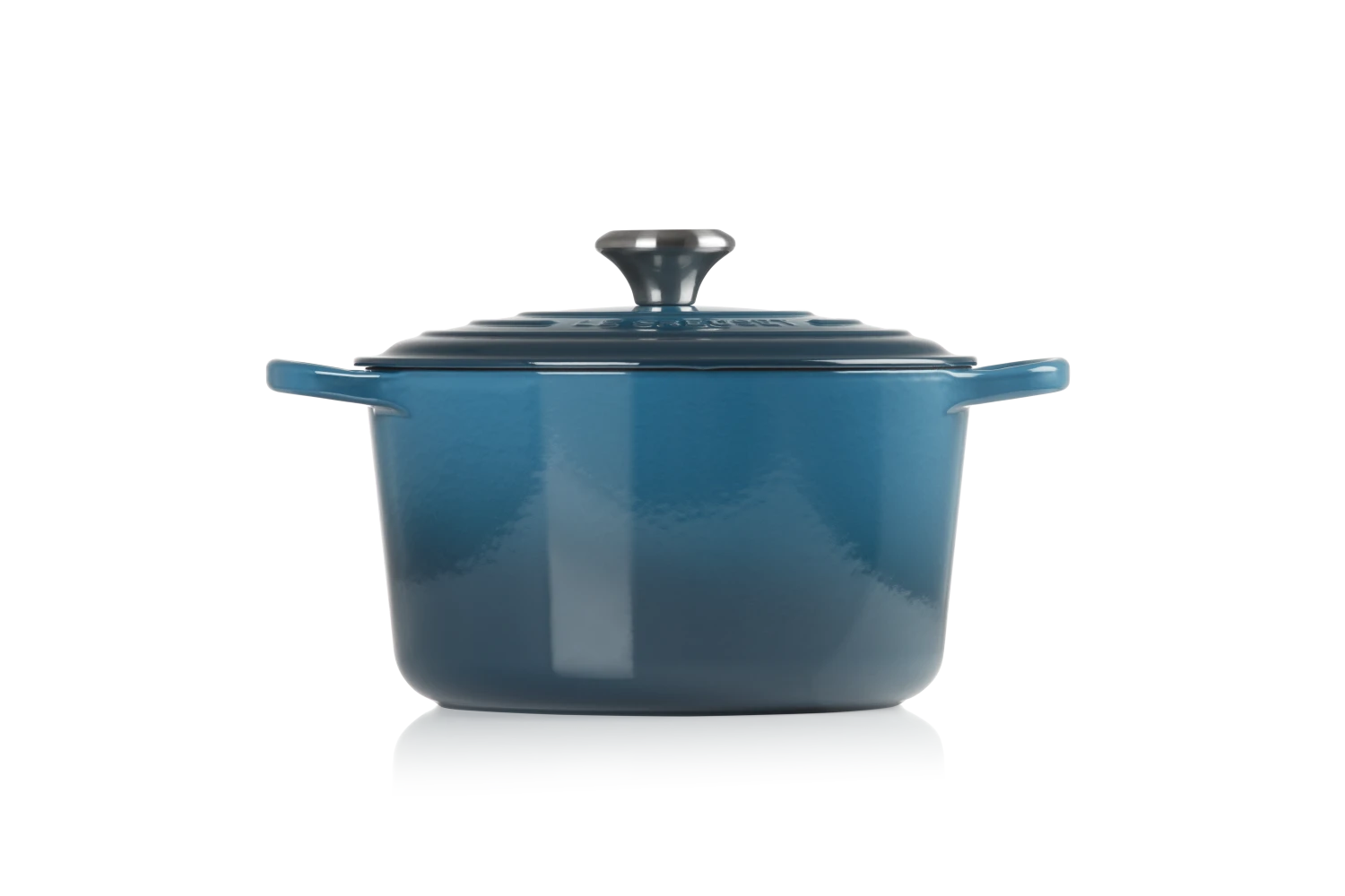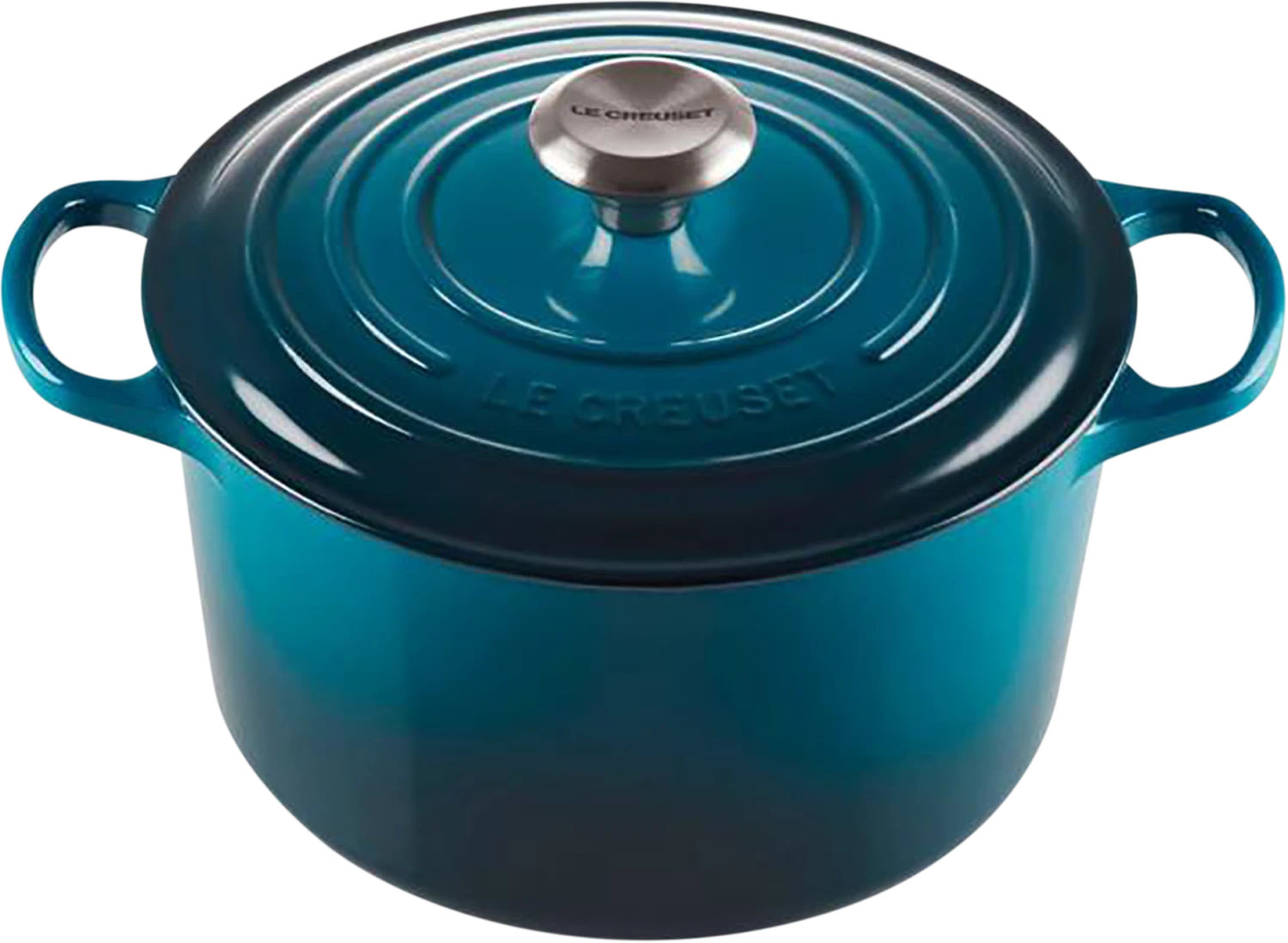 Le Creuset hoher Bräter Signature rund in deep teal. Ideal zum Braten, Schmoren und Backen.