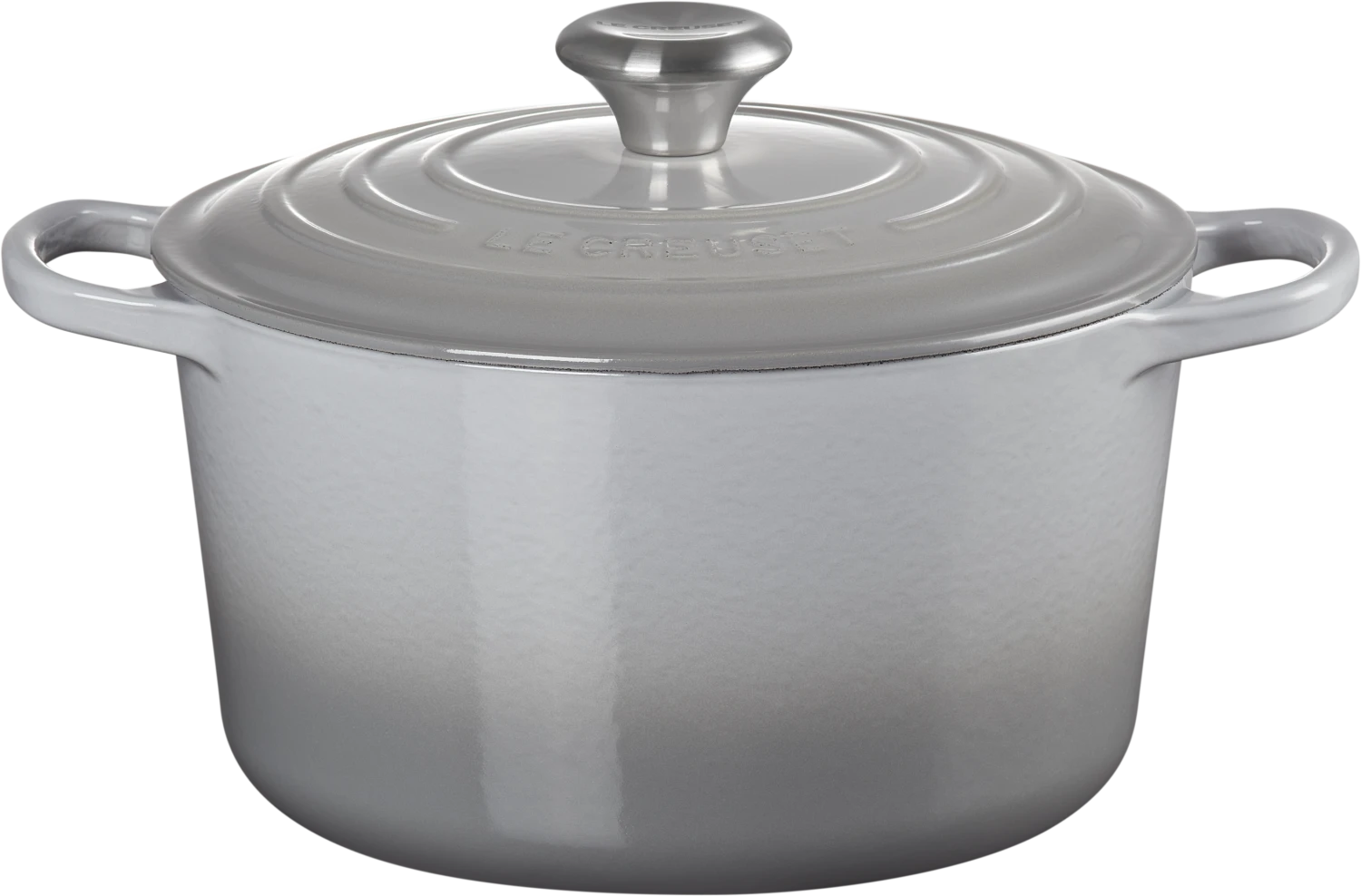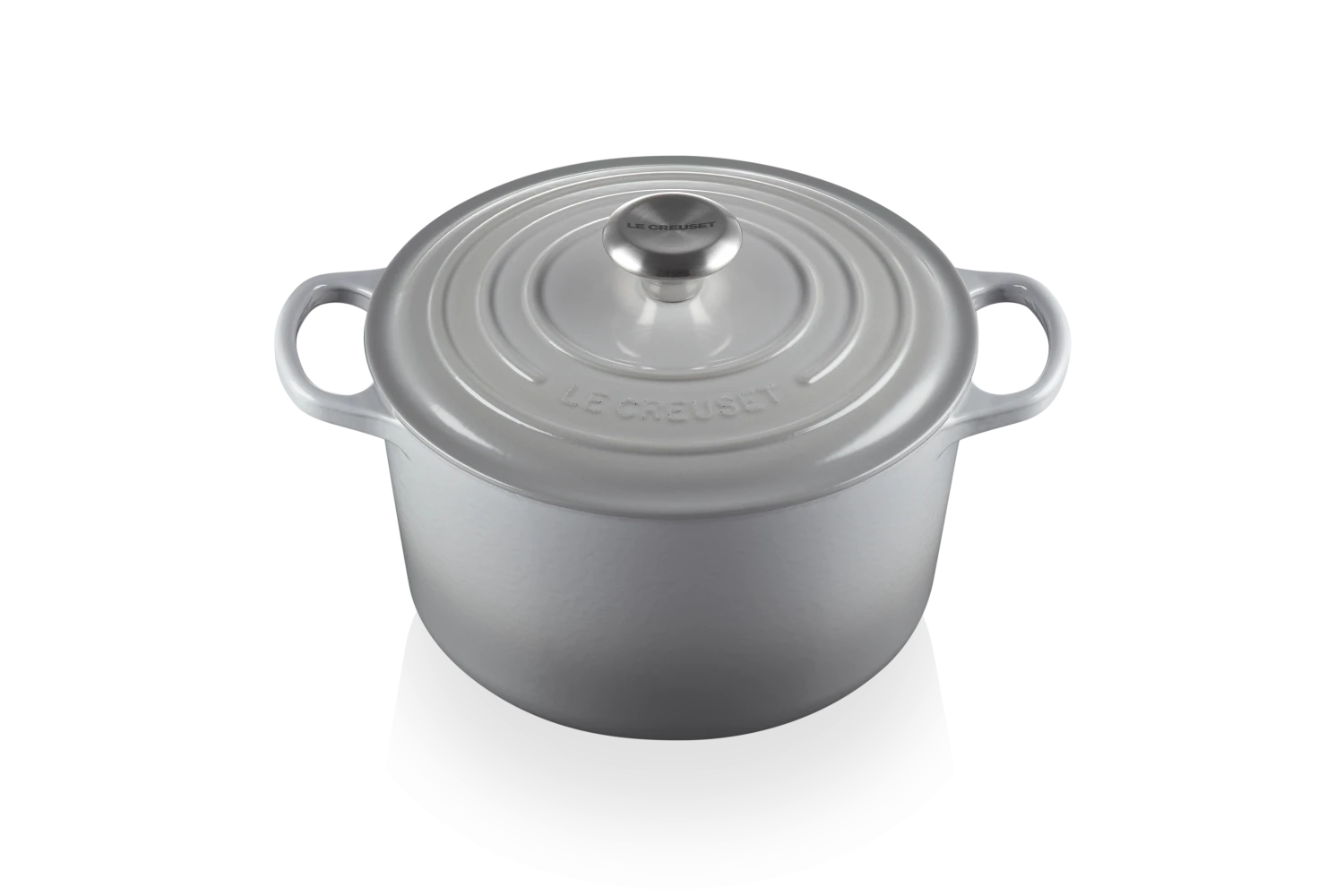 Le Creuset hoher Bräter Signature rund in perlgrau. Ideal zum Braten, Schmoren und Backen.