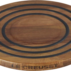 Le Creuset. Dank integrierter Magnete und drei Silikonringen auf der Oberseite haftet er unmittelbar an Metallkochgeschirr. So wird ein Verrutschen verhindert und das Servieren vom Ofen zum Tisch erleichtert. Der aus Akazienholz gefertigte Untersetzer hat eine natürliche Optik und ist hitzebeständig bis zu 250 °C.