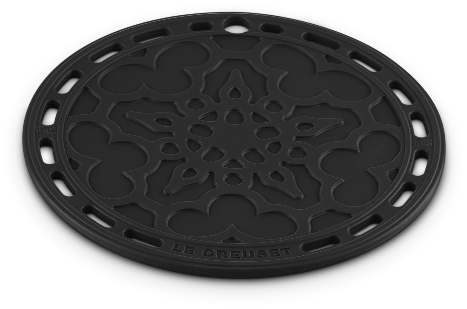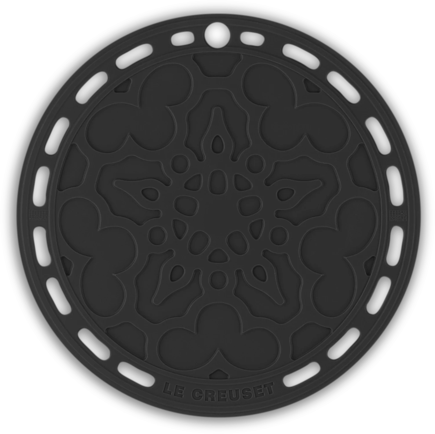 Le Creuset Silikonuntersetzer Tradition in schwarz. Praktischer Küchenhelfer aus Silikon und verstärktem Nylon, bis zu 250 °C hitzebeständig.