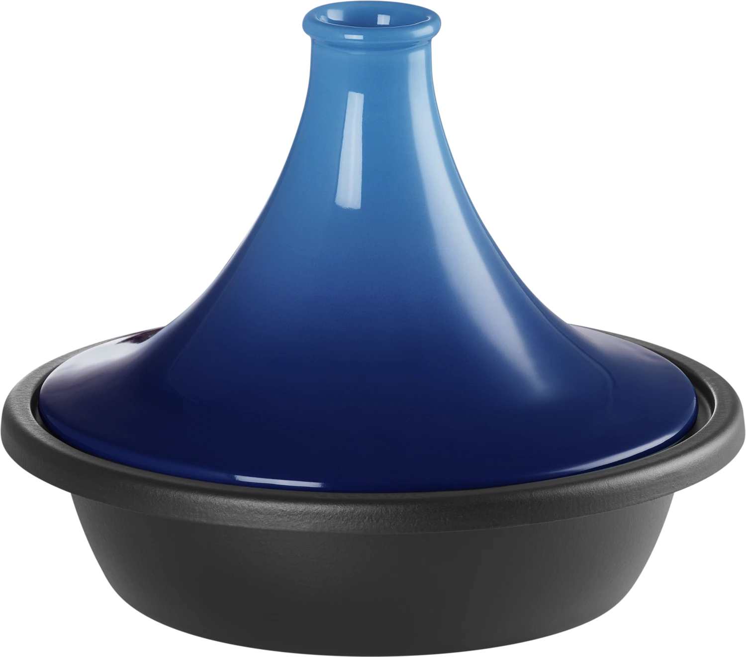 Diese Art des Kochens hat sich Le Creuset zum Vorbild genommen und eine neue Tagine entwickelt, traditionell in der Form, aber mit Materialien, die den modernen Anforderungen an ein Kochgerät entsprechen. Ursprünglich von Kopf bis Fuß aus Ton gefertigt, besteht das Unterteil nun aus emailliertem Gusseisen und der farbige Deckel aus robustem Steinzeug, der die Tagine zum Hingucker auf dem Herd und auf dem Tisch macht.