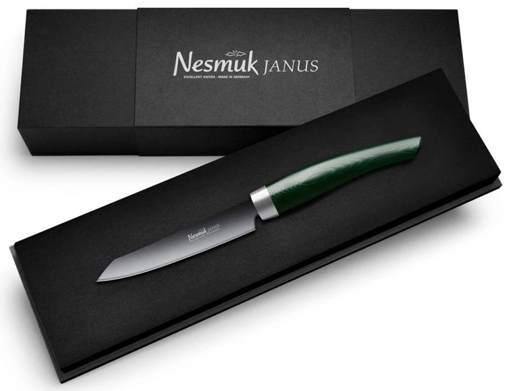 Nesmuk verbindet traditionsreiche Handwerkkunst mit modernster Technologie. Das Unternehmen aus Solingen entwickelt und fertigt Messer in höchstmöglicher Schärfe und setzt dabei auf Stahlsorten, Edel-Materialien und Technologien, die in der Schneidwarenindustrie noch nie zuvor verwendet worden sind – und genau das macht den Unterschied! Alle Messer werden unter dem Anspruch gefertigt, in ihrer Schärfe nicht überboten werden zu können und in jedem Anwendungsbereich den feinstmöglichen Schnitt zu ermöglichen. Die Produkte entstehen in mühevoller, mehrjähriger Detail-Arbeit. Alle Produkte sind mit praktischen und dekorativen Alleinstellungsmerkmalen ausgestattet und genießen den Ruf, jeweils die Besten in ihrer Kategorie zu sein! Sie sind zeitlos, funktional und von höchster Qualität. Es macht keinen Unterschied, ob das Messer links- und rechtshändig geführt wird. Zusätzlich bietet Nesmuk eine Vielzahl an praktischen Zubehör zum Schärfen, Aufbewahren, Pflege sowie Arbeiten wie z.B. Streichriemen, Messerhalter und Schneidbretter an.