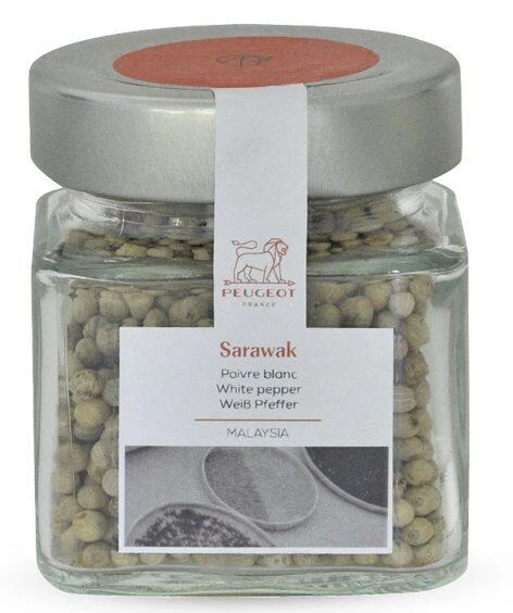 PEUGEOT Weißer Sarawak-Pfeffer, 75g. Weißer Pfeffer aus Malaysia. Perfekt zum Würzen von weißem Fleisch, Fischen und Salaten.