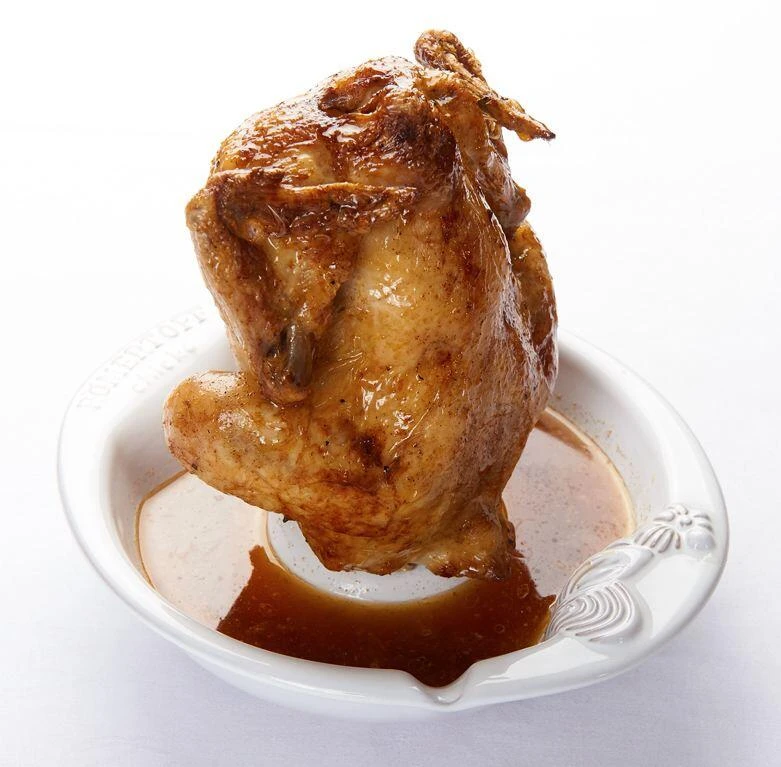 Römertopf Hähnchenbräter Chicko ist für das knusprige Braten von Hähnchen, Poularden und kleinen Enten geeignet. Das Fleisch zart und saftig, die Haut knusprig braun – so schmeckt ein Hähnchen richtig gut. Chicko, der Hähnchenbräter von RÖMERTOPF. Brathähnchen im Ofen garantiert kross, besonders fettarm und dabei zeitsparend zubereitet.