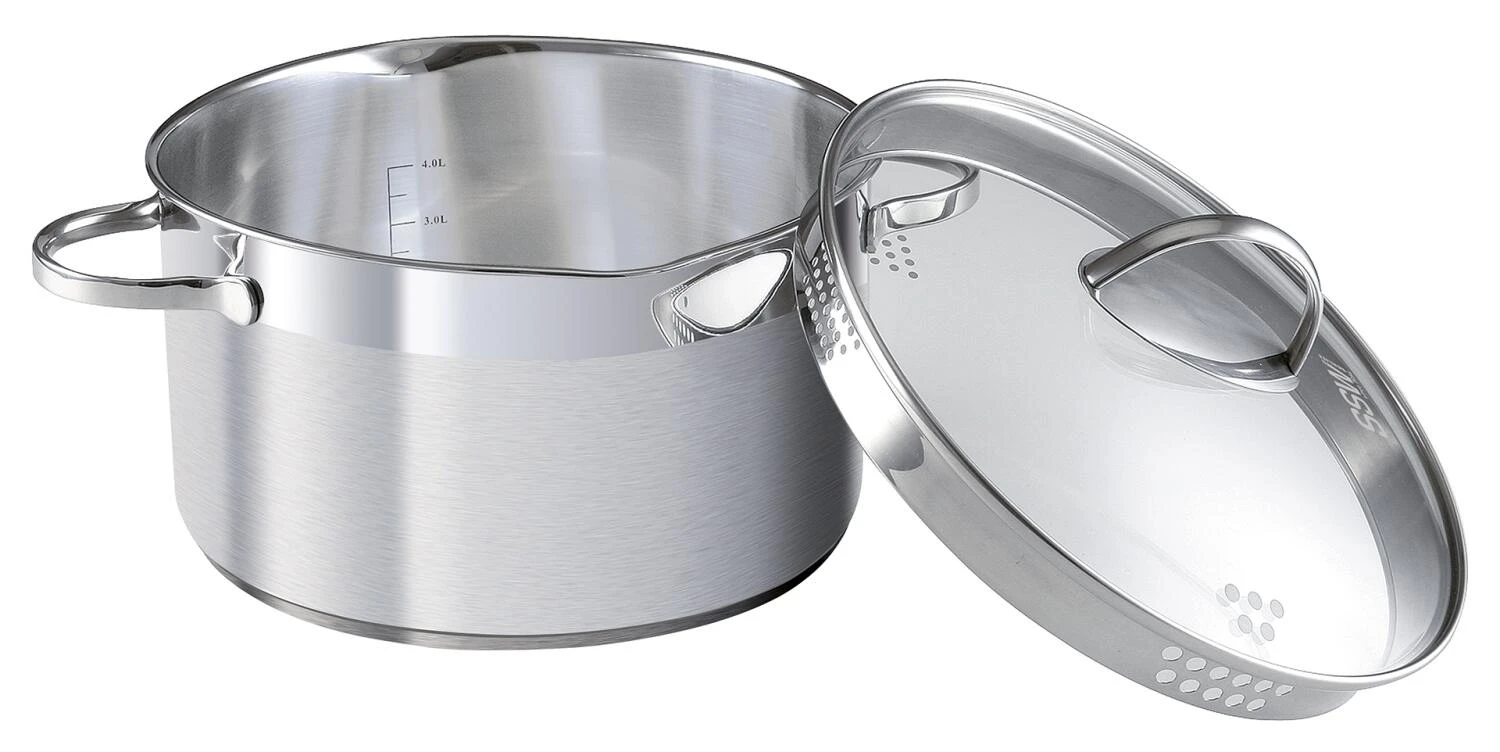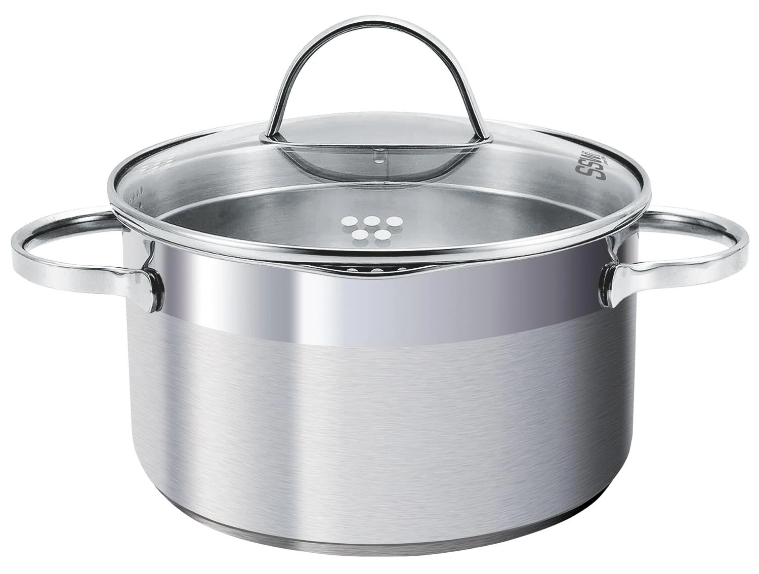 Der Comfort Kochtopf der Marke SSW vereint elegante Optik und praktischen Nutzen in einem Produkt. Der Kochtopf wurde aus hochwertigem, rostfreien Edelstahl gefertigt, wodurch sich das Produkt leicht reinigen lässt. Ein extra dicker Sandwichboden sorgt für eine schnelle Aufnahme und Speicherung von Wärme. So können Sie Ihre Gerichte besonders energiesparend und vitaminschonend zubereiten. Der passende Glasdeckel enthält zwei verschiedene Lochgrößen zum Abgießen von Wasser gekochter Kartoffeln, Spaghetti, Hülsenfrüchte usw. Dazu ist der Kochtopf sowohl induktionsgeeignet als auch spülmaschinenfest.
