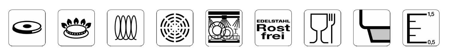 Der Thermo-Sandwichboden gewährleistet eine effektive Wärmeaufnahme und -verteilung und ist für alle Herdarten, inklusive Induktion, geeignet. Die Töpfe speichern die Hitze optimal und eignen sich für Glaskeramik-, Elektro-, Gas- und Induktionsherde. Selbstverständlich ist jeder Topf in der Spülmaschine bequem zu reinigen.