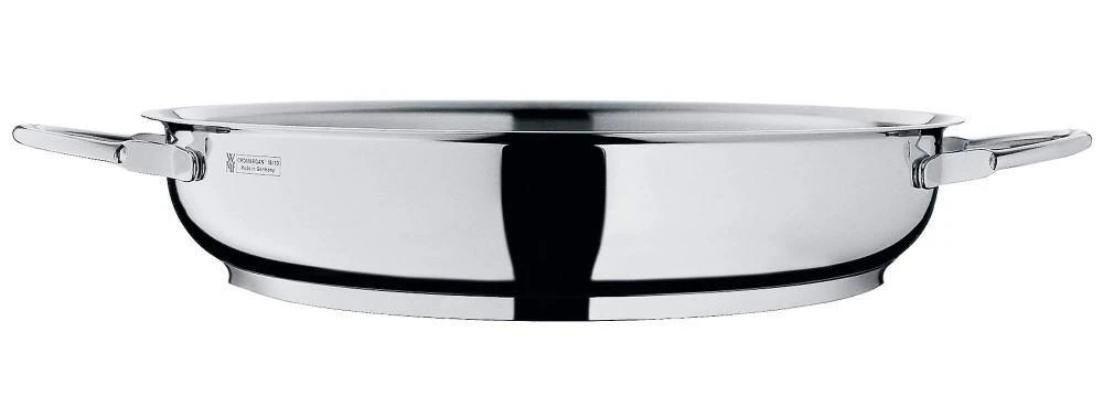 WMF Servierpfanne Profi, 24 cm. Die Servierpfanne mit zwei Seitengriffen aus Cromargan ist ideal zum Kochen, Überbacken im Backofen und zum Servieren.