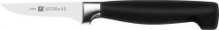Zwilling Gemüsemesser Vier Sterne ist ein kleines, leichtes und vielseitiges Messer mit einer schlanken, mittelspitzen Klinge. Auch Officemesser genannt. Schält, schneidet, putzt und garniert Obst und Gemüse. Gut zum Vorbereiten von Fleisch und zum Spicken geeignet.